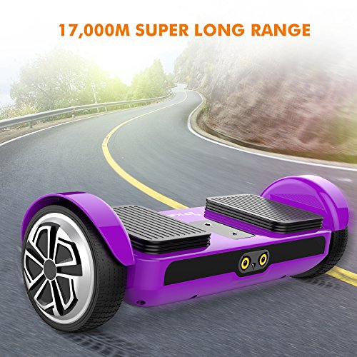 Título: Hoverboard Scooter eléctrico de dos ruedas con equilibrio automático Certificación UL 2272 con luz LED, corrección de equilibrio inteligente, placa base completa, alcance de 17 km, violeta